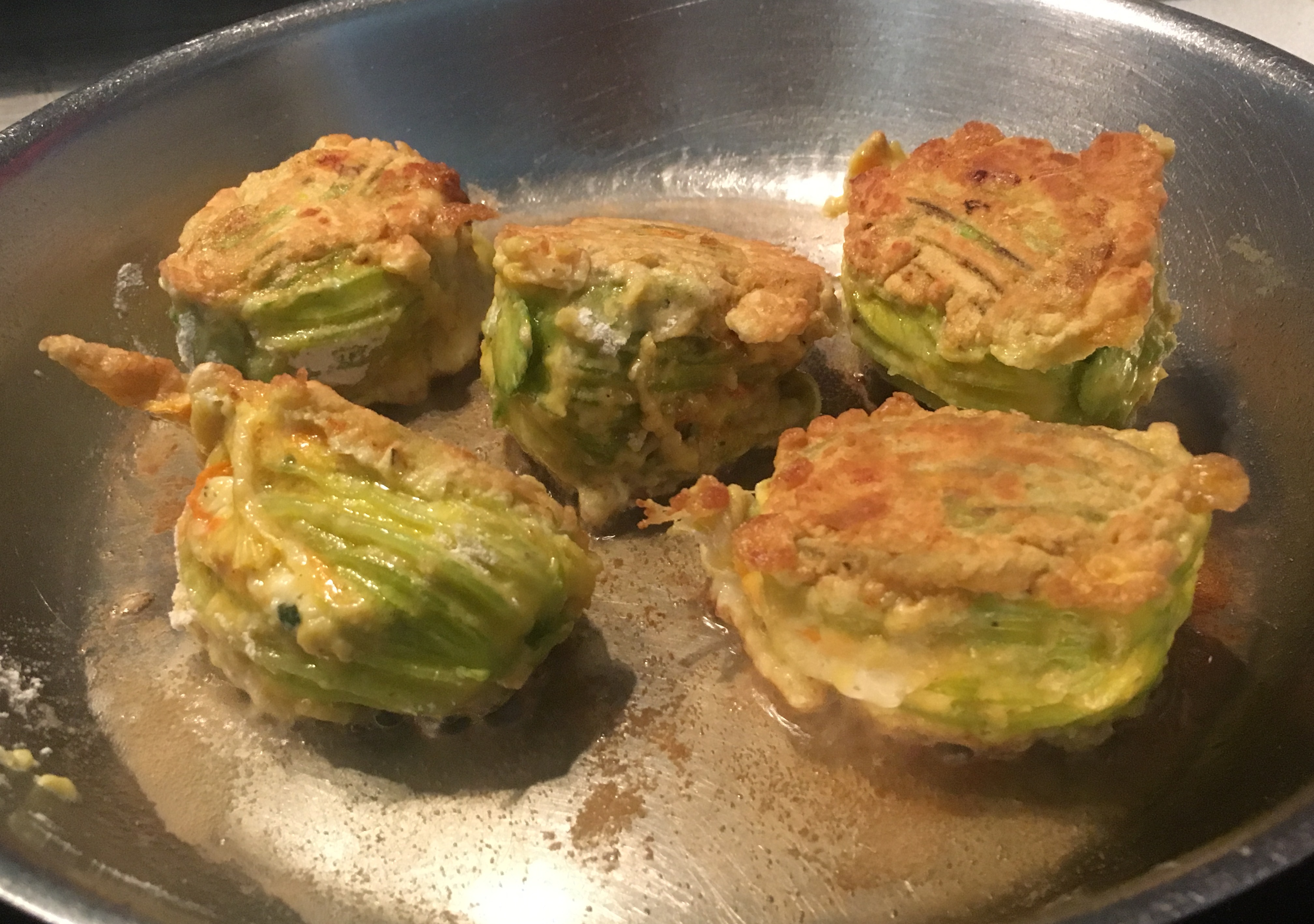 Crêmig gevulde courgettebloemen met saliekaas, mozzarella en feta