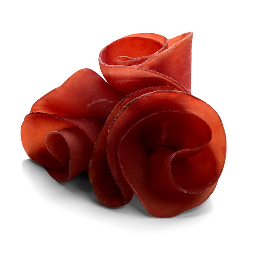 3 plakjes Bresaola della Valtellina, de plakjes tot bakjes gedroogd in de oven
