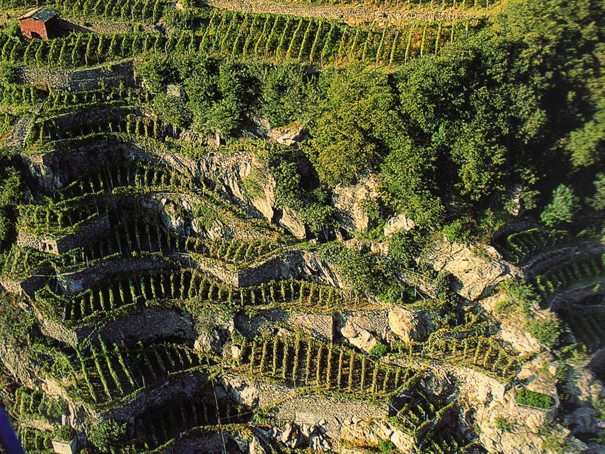 De wijngaarden worden door de Alpen beschermd tegen de koele noordenwind. De ligging maakt mechanisatie onmogelijk, van het telen tot het oogsten wordt in de oude wingaarden met de hand gedaan. Dat is noeste arbeid in een ruig landschap van hakken, stapelen, opvullen met teelaarde om dan nog niet te spreken van het werk aan de wijnstokken zelf.