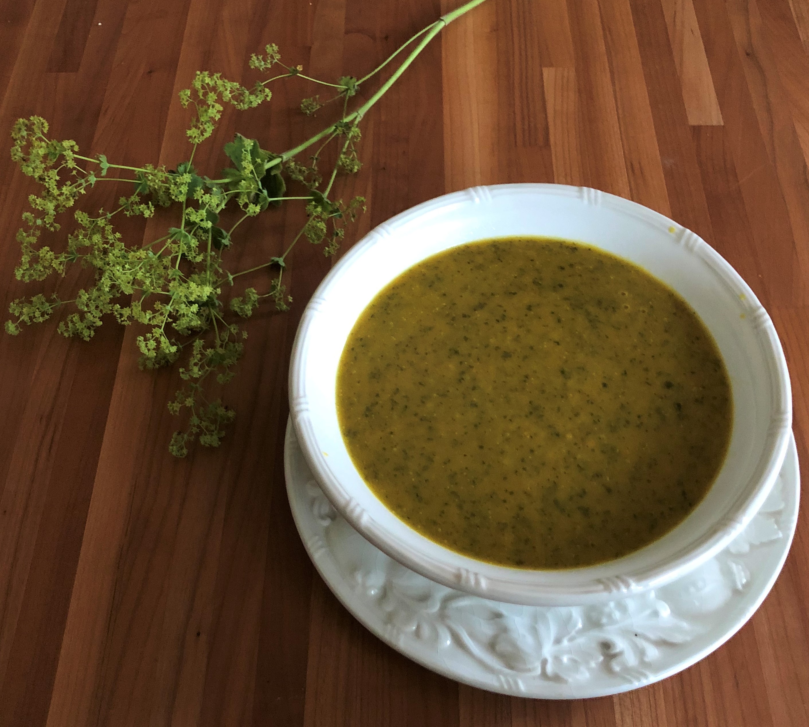 Verwarm de soep nog even, laat haar niet meer koken en roer tot slot de crème fraîche er luchtig door. Serveer deze soep liefst in een mooi bord, geef er knapperig gebakken brood naar keuze bij en een glaasje van de rosé.