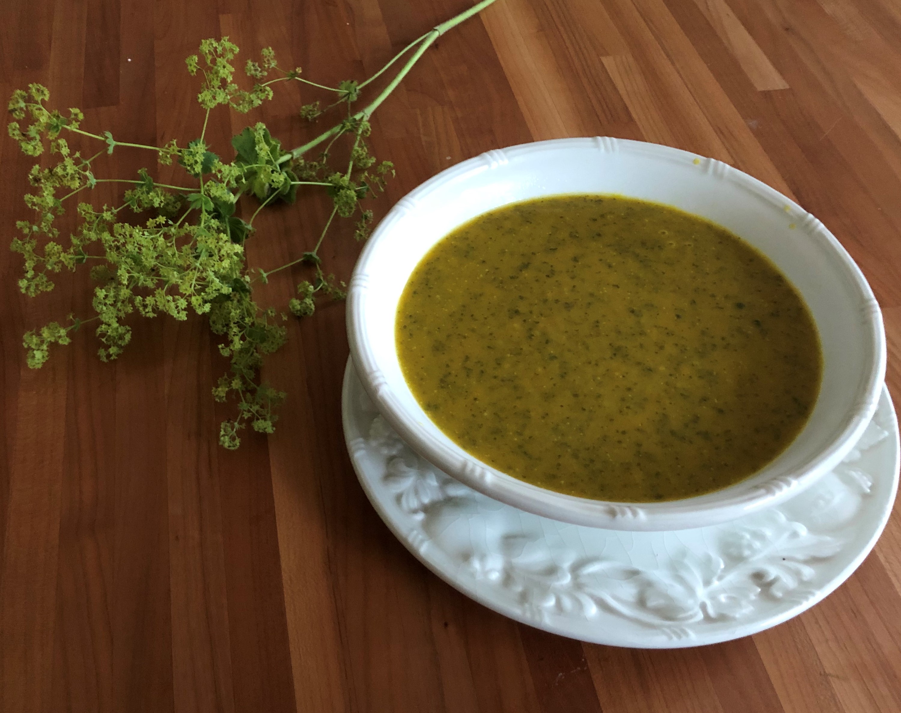 Knapperige pittige waterkers is heerlijk om te verwerken in een zomerse soep. Als hoofdgroente koos ik dieporanje zoete bospeen, naar voorbeeld van Ottolenghi geroosterd in de oven met ras el hanout. Met een rood uitje, alouette aardappeltje en wat citroentijm bijzonder smakelijk en supergezond.
